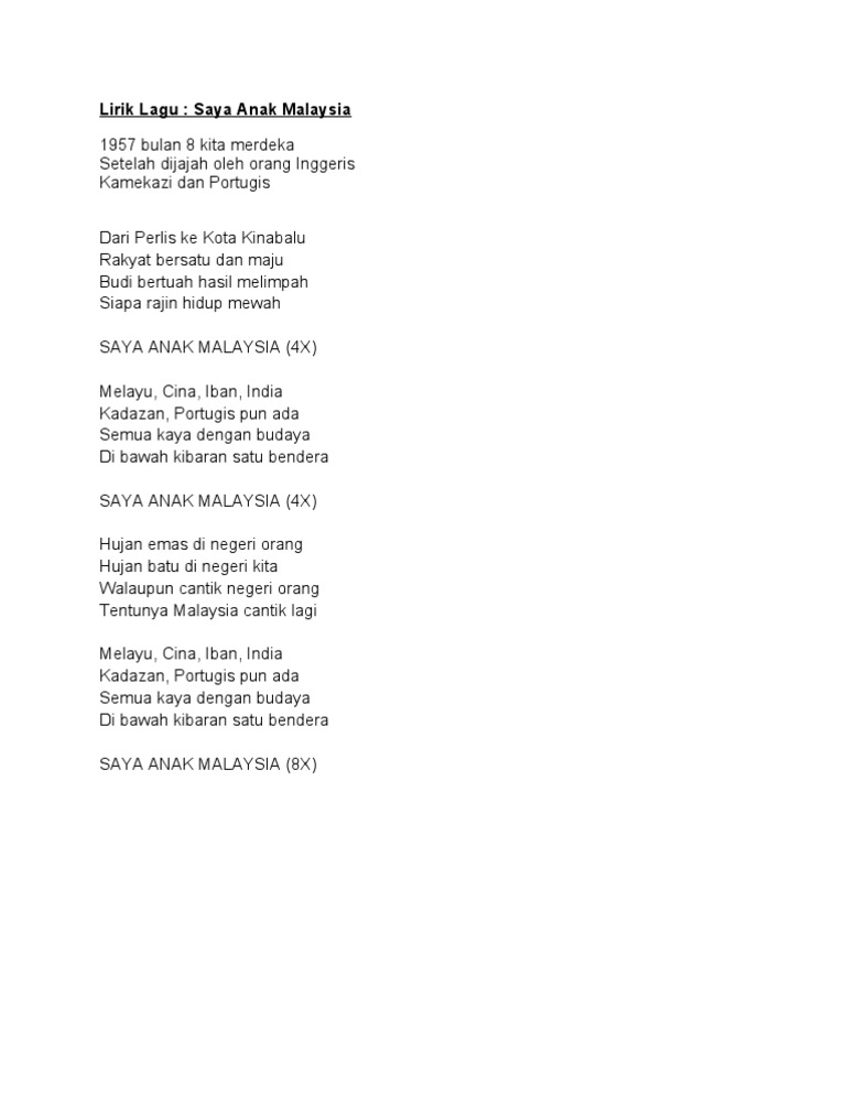 Lirik Lagu Saya Anak Malaysia Pdf